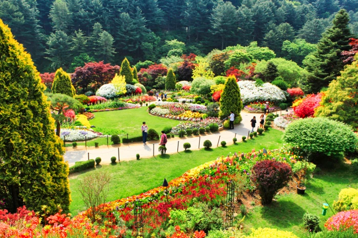 아침고요수목원은 축령산의 빼어난 자연경관을 배경으로 하여 한국의 미를 듬뿍 담은 정원들을 원예학적으로 조화시켜 설계한 원예수목원이다. 여러 가지 특색 있는 정원을 갖추고 있고, 울창한 잣나무숲 아래에서 삼림욕을 즐길 수도 있어 도시민들에게 쉼터를 제공한다. 설계자(한상경, 삼육대학교 원예학 교수)가 명명하였으며, 1996년 5월에 개원하였다. 20개의 주제를 가진 정원은 아름답게 가꾸어진 잔디밭과 화단, 자연스러운 산책로로 연결되어 있다. 특히, 아름다운 대한민국의 금수강산을 실제 한반도지형 모양으로 조성하여 최고 절정의 꽃으로 표현한 하경정원(Sunken Garden)은 관광객들의 관심을 가장 많이 끄는 곳이다. (자료출처 : 대한민국 구석구석 - korean.visitkorea.or.kr)